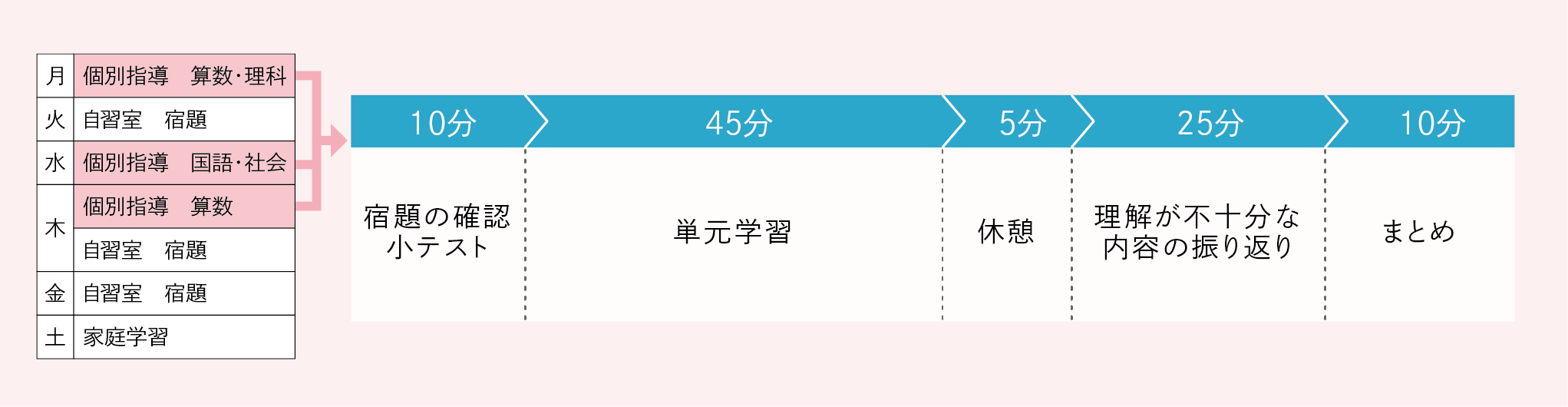 苦手部分や重要ポイントの確認・解説など、個別指導だからできる個々に合わせた学習を効率よく行います。