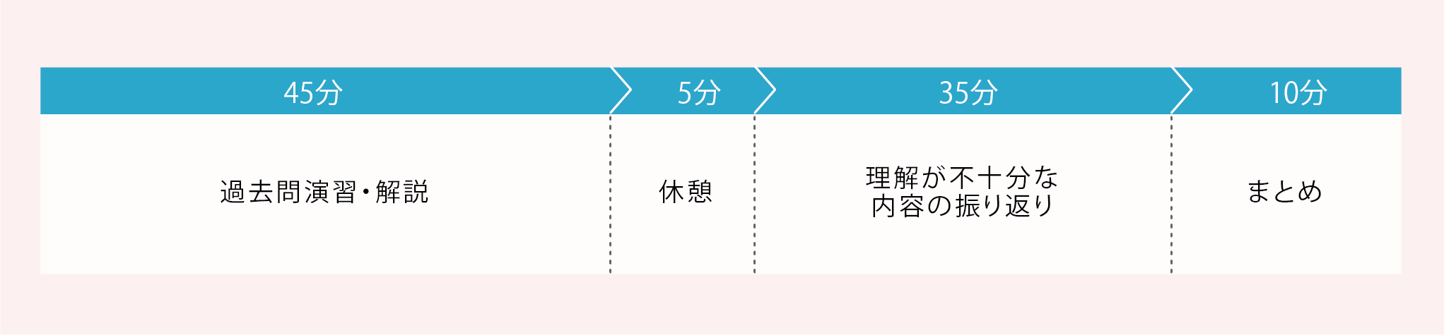 過去問題集の演習と解説を通して、問題の形式や頻出問題など志望校の入試の特徴を理解し、効率的に学習します。