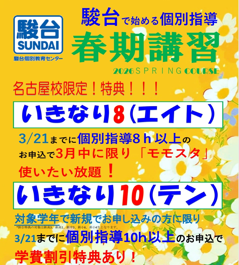 🌸春期講習🌸名古屋校独自特典!