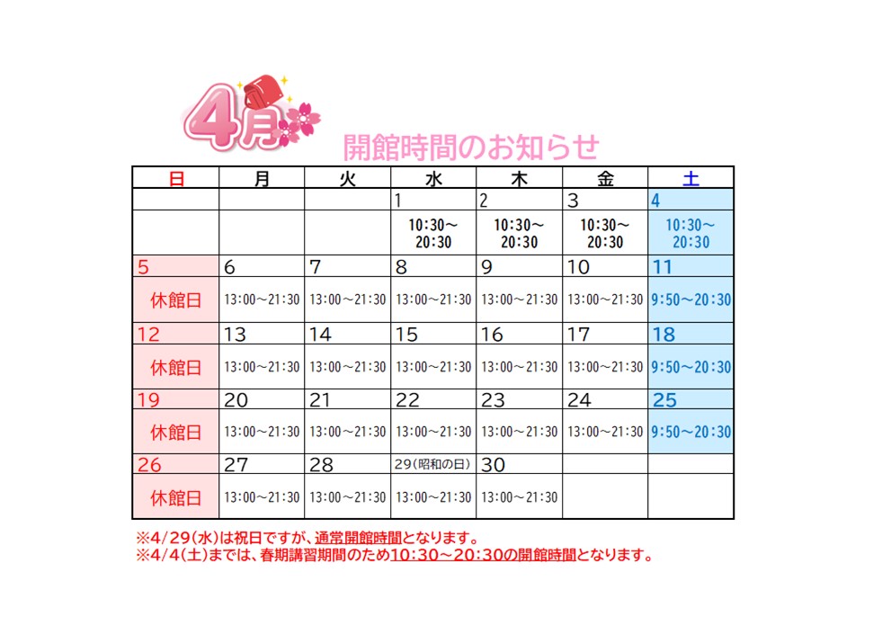 【4月開館時間】